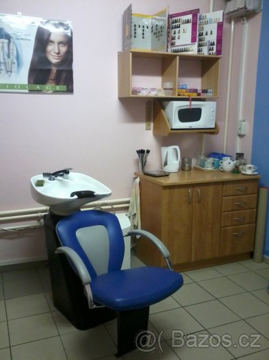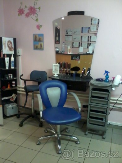 Nabízím k prodeji kompletní vybavení do kadeřnickéhosalonu. Komplet obsahuje:1x recepce,2x kadeřnické křeslo,1x kadeřnická obsluha se zrcadlem,1x mycí box,1x dětská židle na stříhání,1x pojízdný vozík, 1x podnožník, 1x velký osvětlený stojan,1x malý stojan,1x malá kuchyňská linka na přípravu materiálu,polička,2x křeslo a konferenční stolek. Vše barevně laděné.